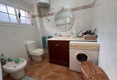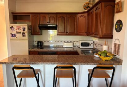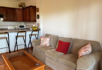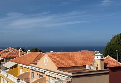 Gut geschnittene Eckwohnung mit großer Terrasse. Die gepflegte, schicke Anlage bietet einen großen Pool und ist nur wenige Gehminuten vom Strand entfernt. Die Terrasse hat einen schönen Blick auf das Meer und ins Grüne. Die Wohnung liegt von der Eingangseite ebenerdig und hat vor dem Eingang eine 20 m² große Terrasse. Die 16m² große Terrasse im Anschluß des Wohnzimmers liegt im 1 Stock oberhalb der Tiefgarage, somit hat man niemanden unterhalb und rechts als Nachbarn. Sie wird komplett möbliert und ausgestattet verkauft. Die Lage bei Punta Brava am Stadtrand von Puerto de la Cruz ist ruhig und hat trotzdem eine gute Infrastruktur in Laufweite.