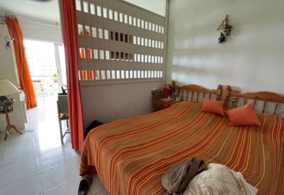Studio im 7 Stock des Gebäudes „Seguro de Sol“. Vom Balkon hat man Blick zum Meer und zu einem kleinen Stadtpark. Die Lage bietet eine hervorragende Infrastruktur, nur wenige Schritte vom Strand und Busbahnhof entfernt. Die gepflegte Anlage verfügt über einen Gemeinschaftspool zur Erfrischung und zum Sonnenbaden. Hier können Sie das ganze Jahr über ein angenehmes Klima geniessen. Die Lage ist absolut zentral, mit einer Vielzahl von Supermärkten und Geschäften und auch der Busbahnhof befindet sich gegenüber. Der beliebte Playa Jardin Strand ist nur fünf Gehminuten entfernt.